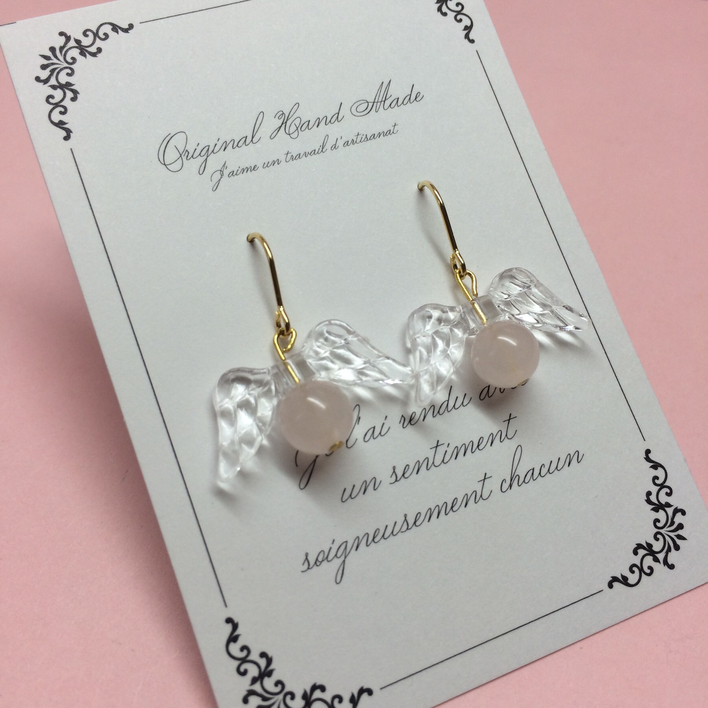 恋愛成就のストーンで有名な、天然ローズクオーツを使用した可愛いアクセサリーです。