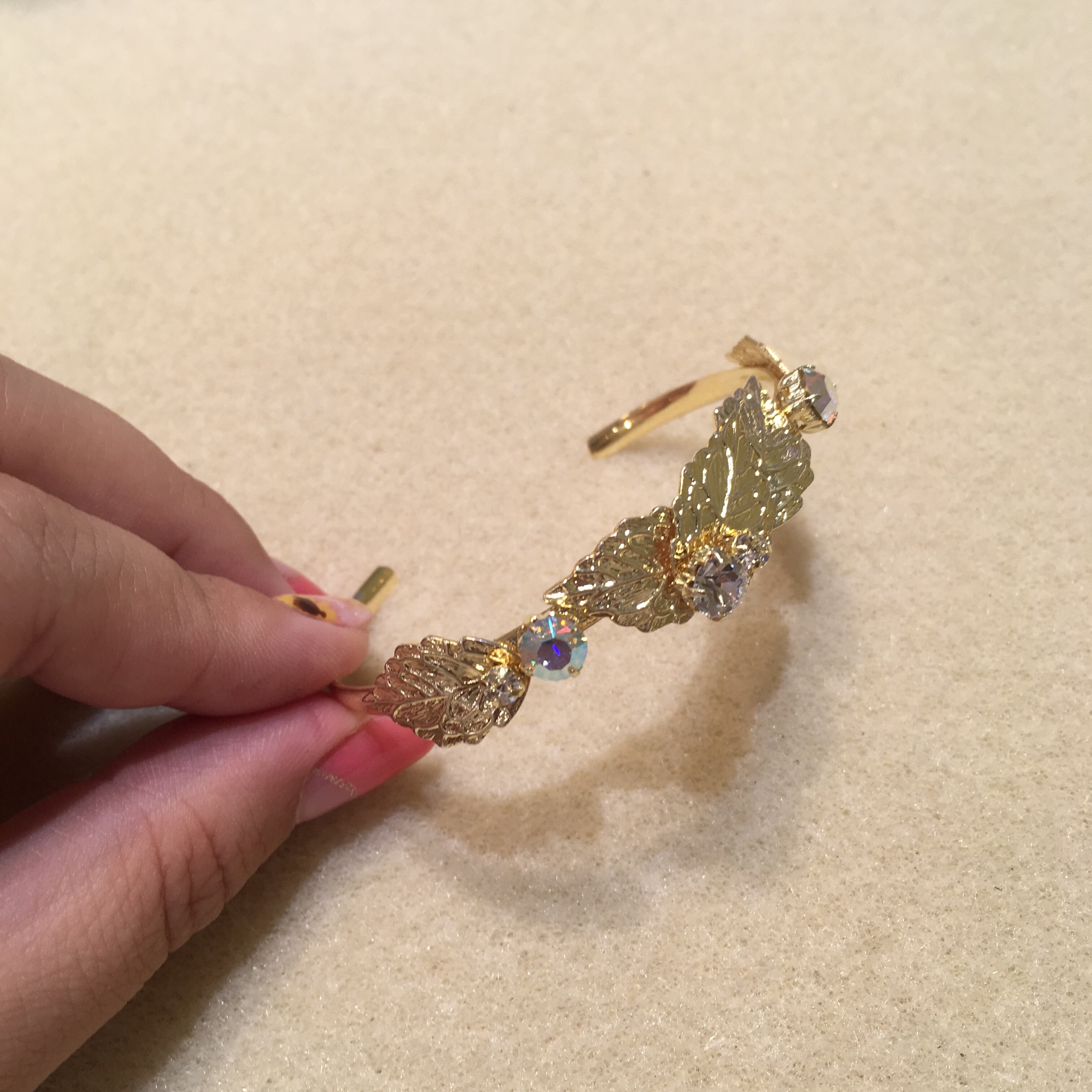 ゴールドリーフとキラキラなストーンを散りばめたバングル、ブレスレット.*